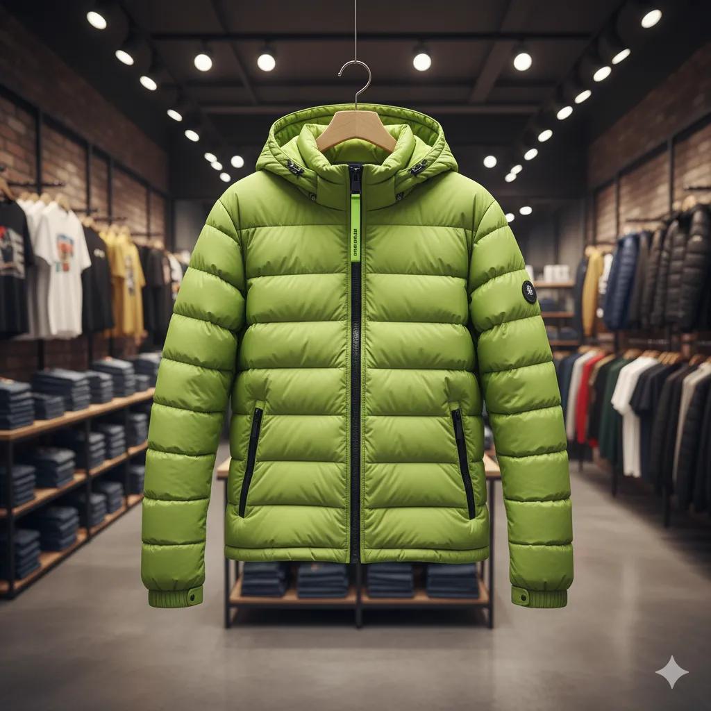 جاكيت پفر Premium باللون الأخضر الليموني الفاقع اللي ما يتفوتش عنه أحد في الشارع