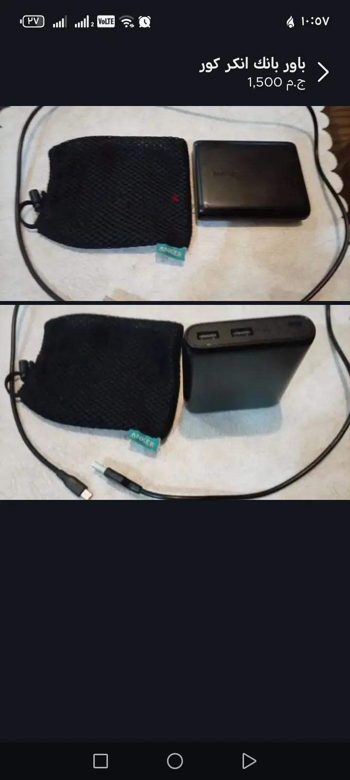 باور بانك انكر ١٣٠٠٠ امبير يشحن ٢ موبايل في نفس الوقت يدوم فتره كبيره جهاز استخدام خفيف اوي كسر زيرو مجرد خدوش على الجسم من الخارج بس معاه الغلاف بتاعه و الوصله الاصليه