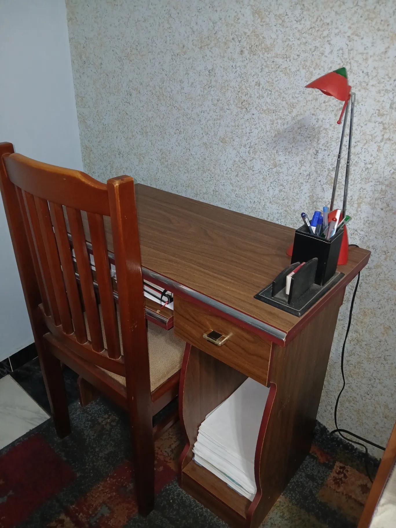 للبيع ترابيزة كمبيوتر وتصلح مكتب للأولاد الصغار للمذاكرة بكرسى وأباجورة . الكرسى خشب زان متين ومحمل .