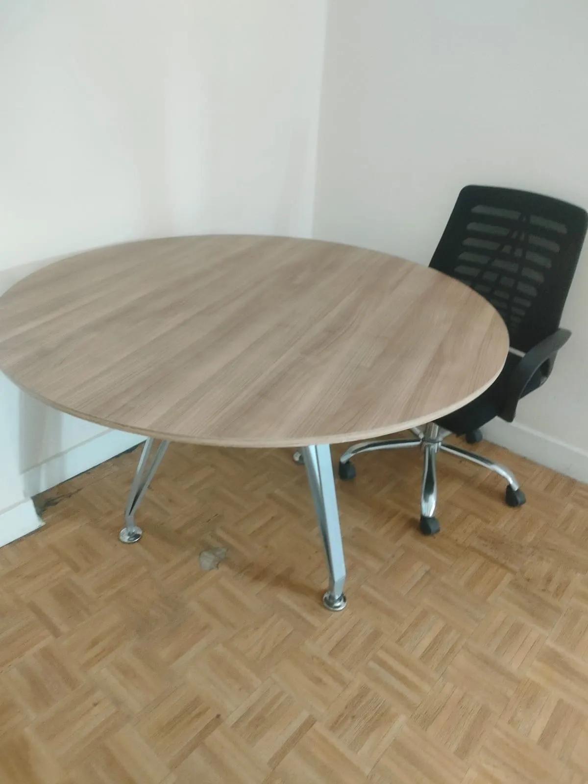 ترابيزه اجتماعات دائرية شاسيه معدن وقرصه من اجود انواع الخشب استعمال خفيف شهرين