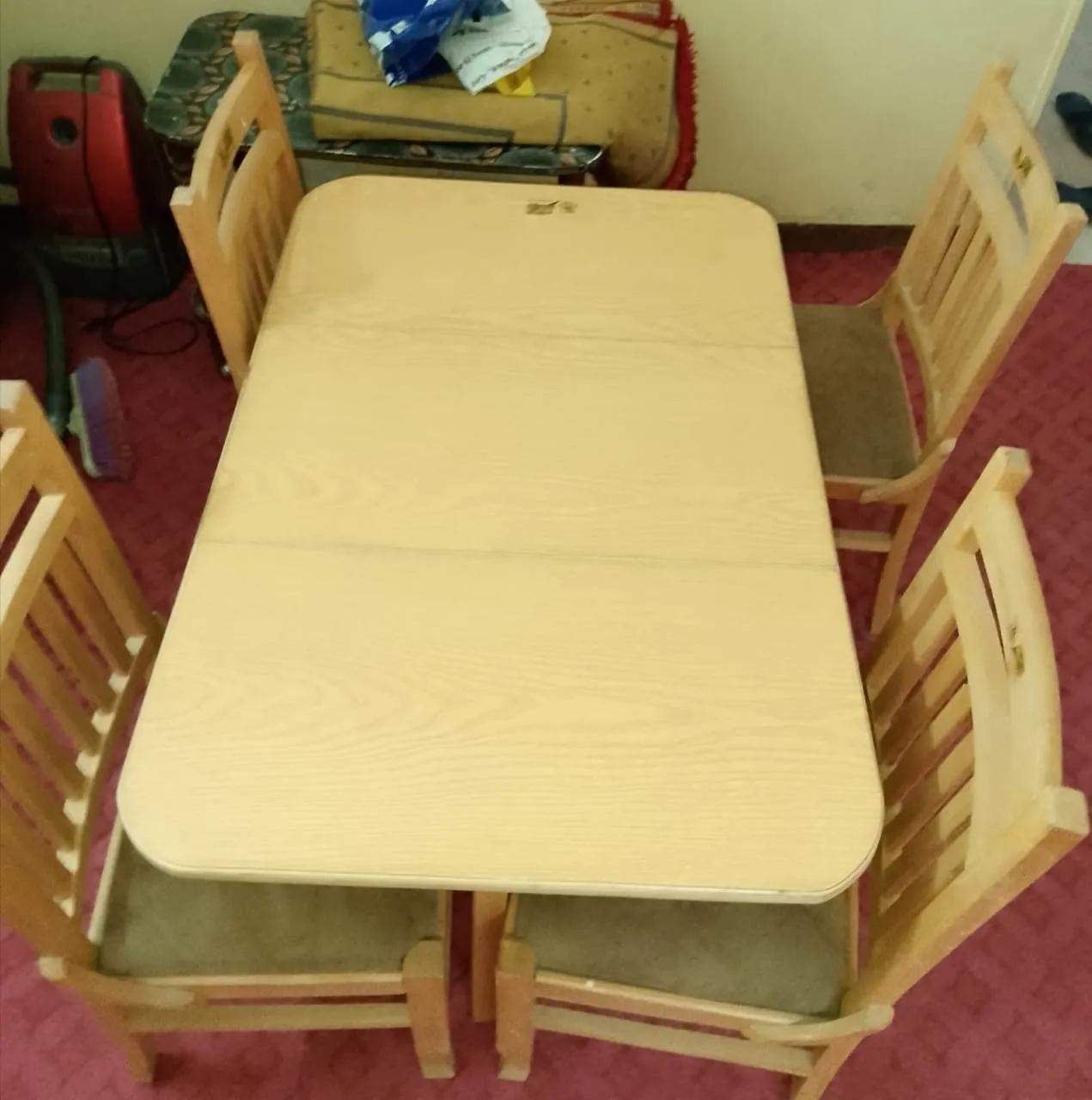 ترابيزه واربع كراسي لجميع الاغراض خشب زان