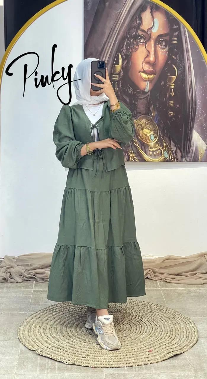 طقم مكون من دريس واسع مريح مع جاكيت قصير بنفس اللون 👗💛💚💗
