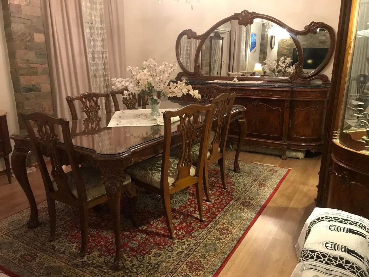 السفرة زان ٨ كراسي و بوفيه بالرخام و المرايا و نيش مرايا و اضاءة