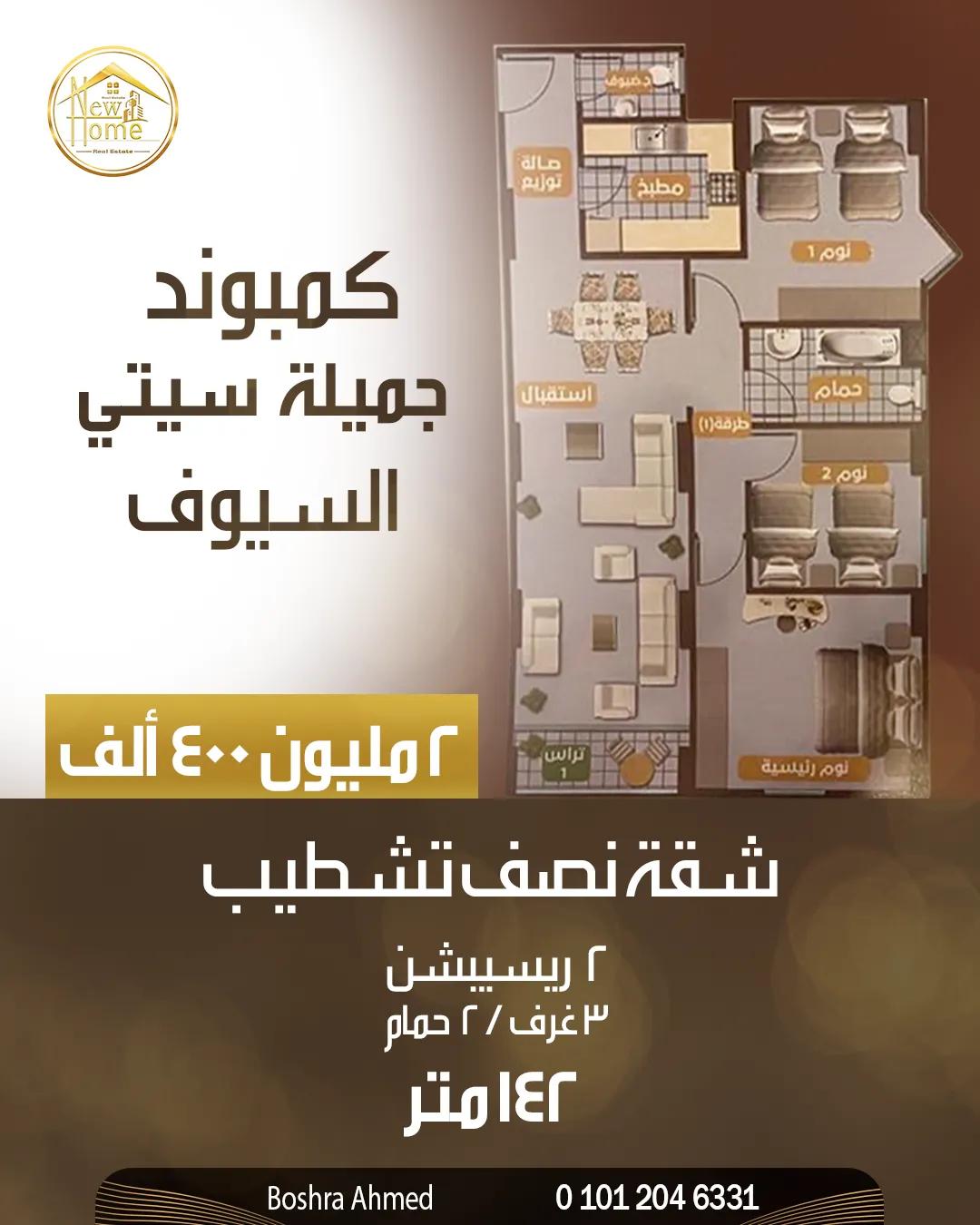 •3غرف + 2ريسبشن +2 حمام +1 مطبخ