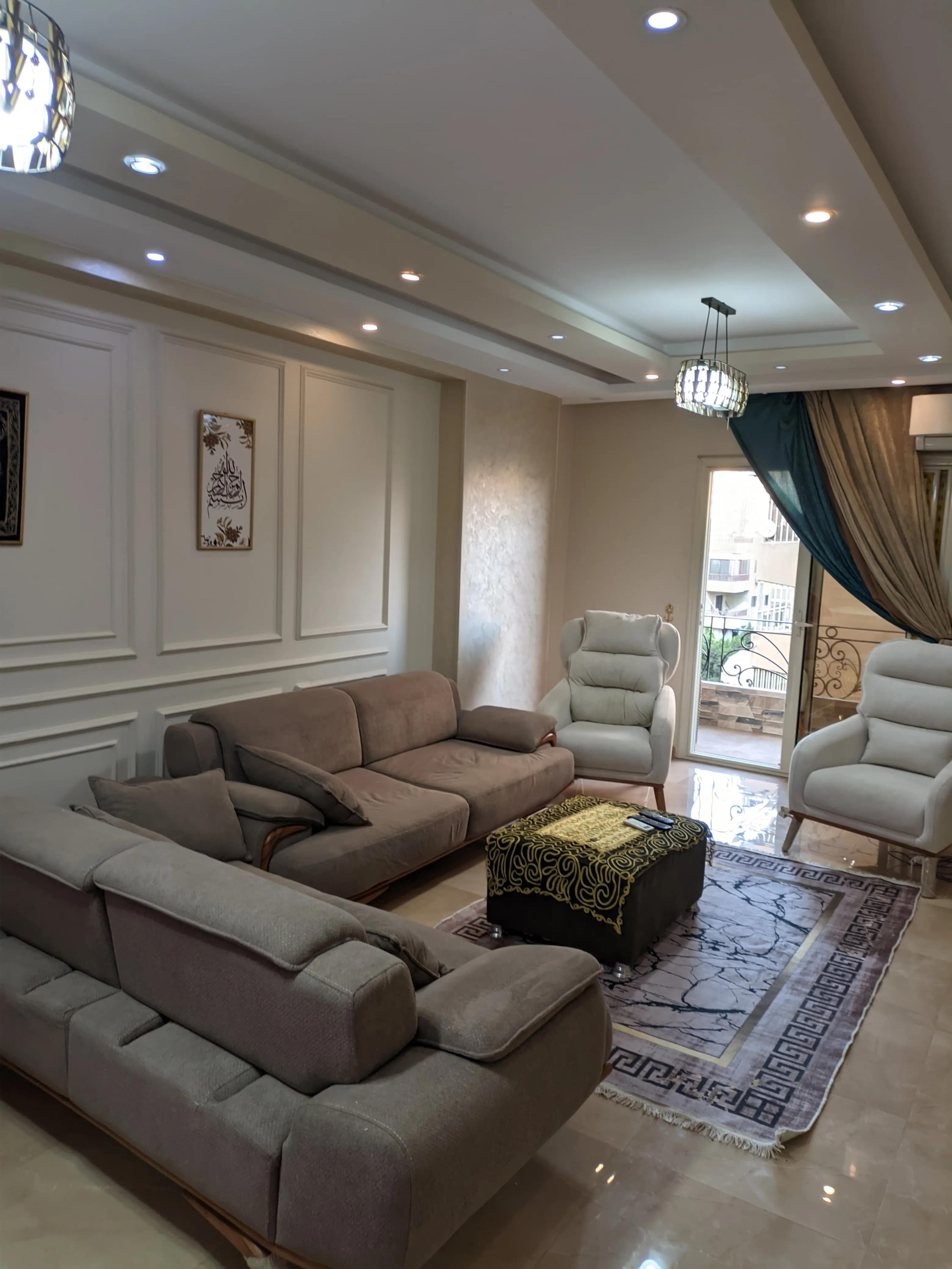 شقة مفروشة فرش فندقي للإيجار في المنطقة الاولى مدينة نصر ، الشقة 3 غرف 2 حمام مطبخ مجهز بالكامل بلكونة على الشارع العمارة جديدة تتمتع بواجهة جميلة ويتوفر في الشقة خدمات الواي فاي بالإضافة إلى أنها مكيفة بالكامل والعمارة بها اسانسير المنطقة هادئة وكلها عائلات ومدارس ومحلات تسوق .