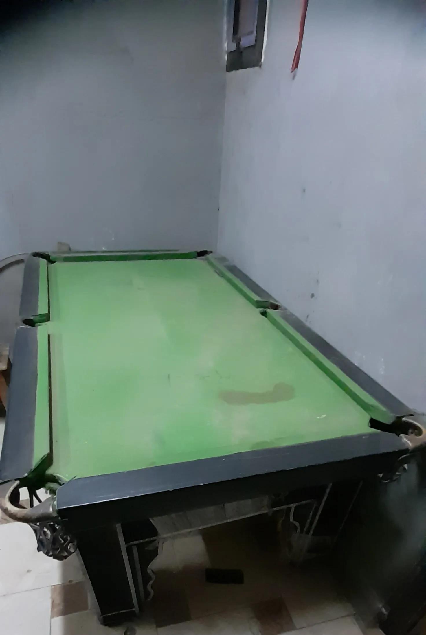 طربيزة بلياردو مستعملة بحالة جيدة مقاس ٧ بدون الكور ويوجد أستيك واحد السعر ٣٥٠٠