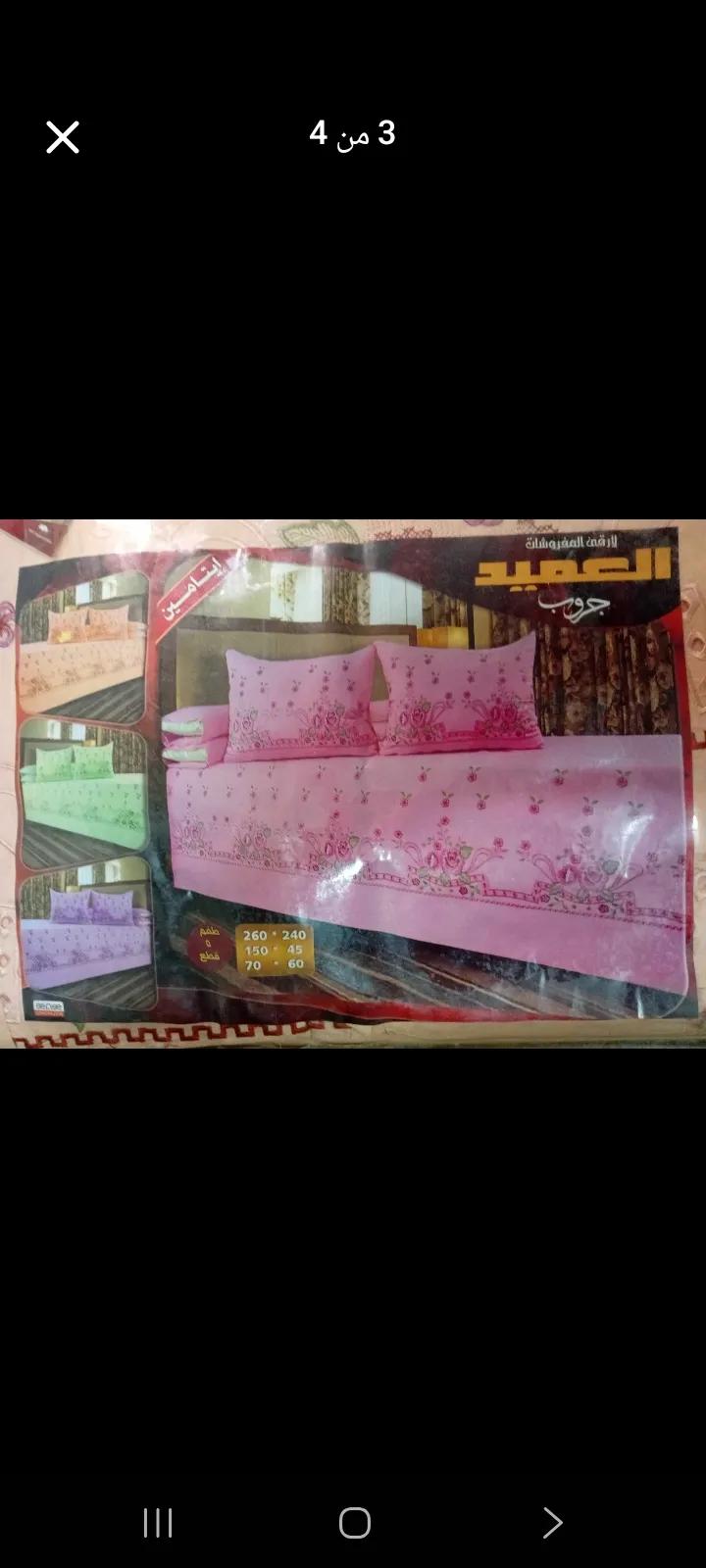 طقم ملايا سرير جديد متفتحش ٥قطع مقاس كبير ٢٦٠×٢٤٠ خامة قطن ١٠٠% مطرز ماركة العميد لا يوجد شحن