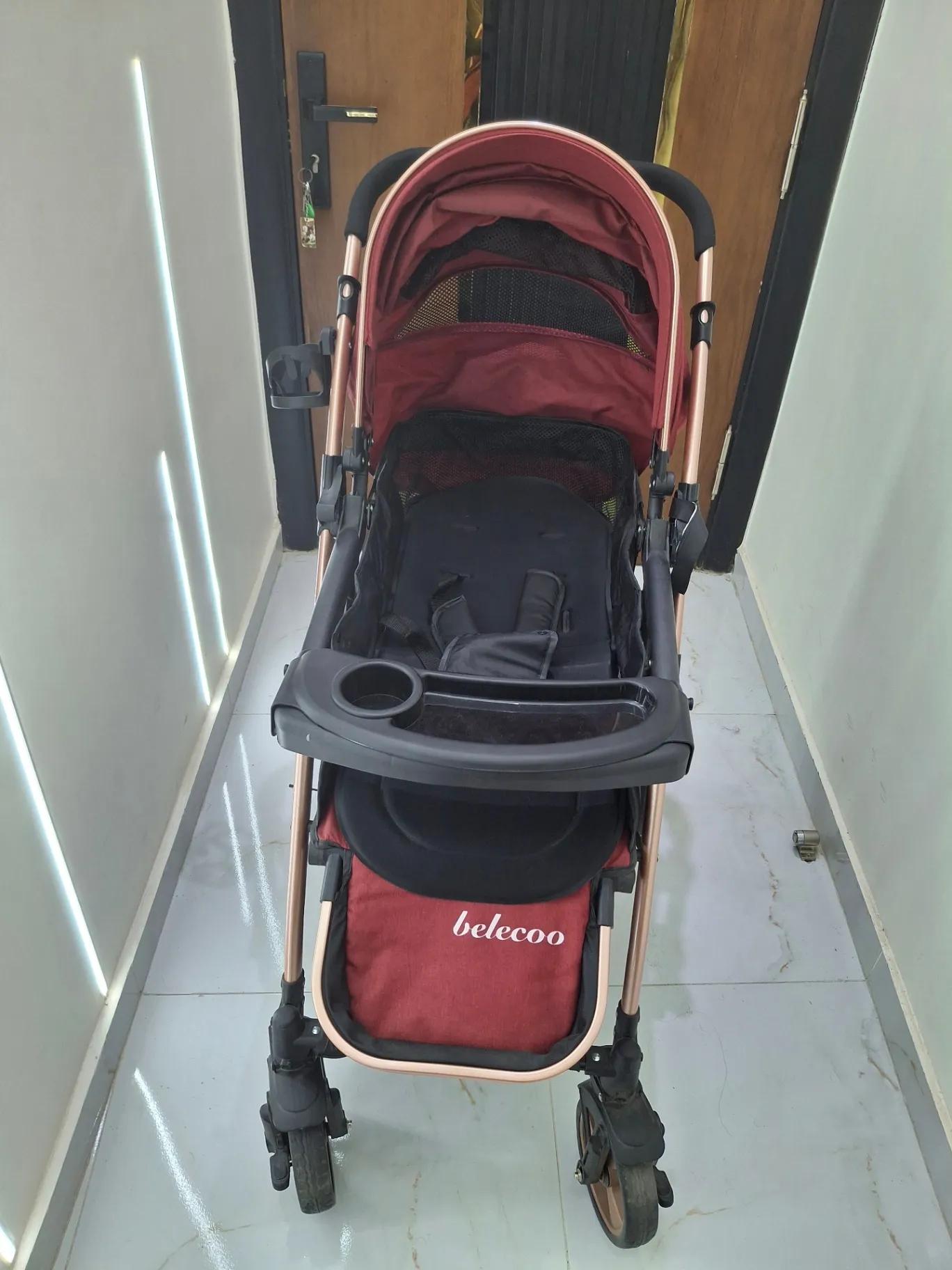 عربيه belecoo جديده غير مستعمله ولا ثانيه دراع قلاب ٣ مستويات بار للطفل يمكن تركيبه وفكه وباسكت لكبايه المامي وباسكت تحت