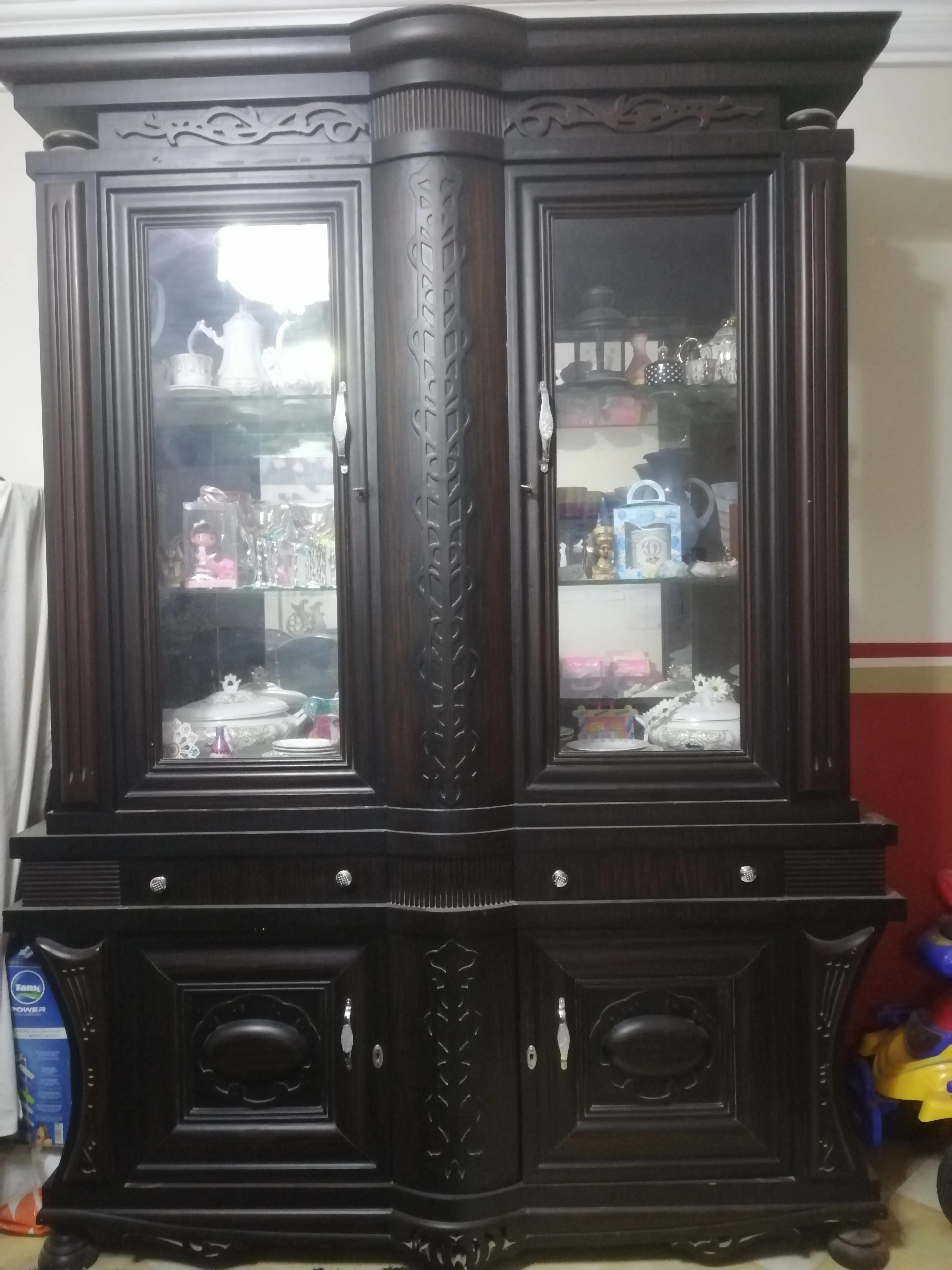 غرفة سفرة خشب زان دمياط متين استعمال خفيف.. مكونة من ترابيزة ٨ كراسي وبوفيه ٢ متر ونص درفتين كل واحدة رفين وخزنة سحرية بين الدرفتين وله مراية بالعرض كله.. ونيش فيه مرايه من الداخل وله درفتين كل واحدة فيها تلات ارفف زجاجية..