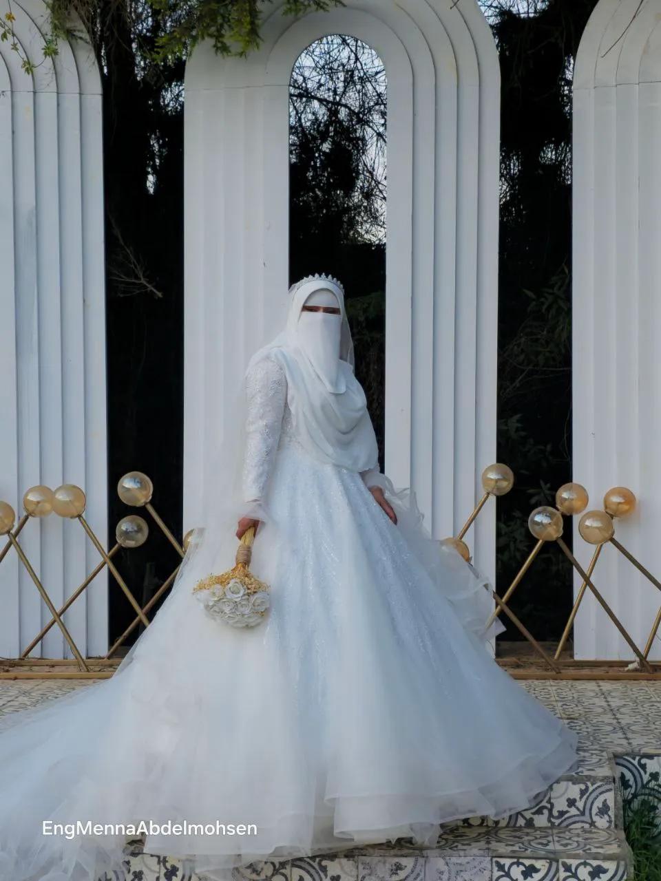 فستان تل فرنسي بذيل طوله متر تقريبا او اقصر