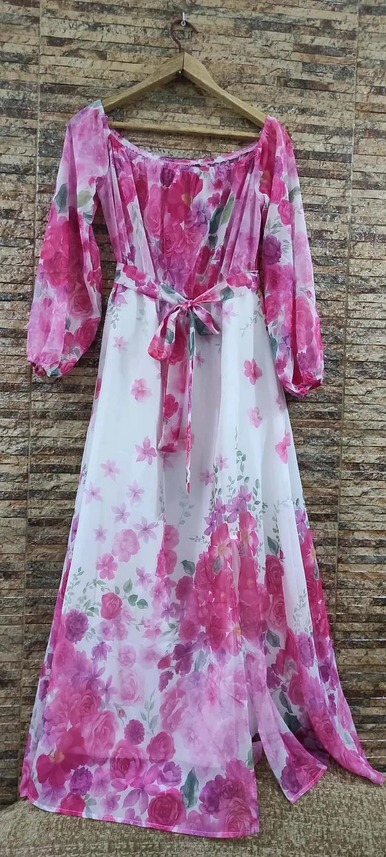 فستان شيفون جديد تماما منقوش خامة ناعمة جدا مقاس M الجزء الأسفل مبطن اما الجزء العلوي غير مبطن يصلح للمناسبات يلبس لحد 65 كيلو