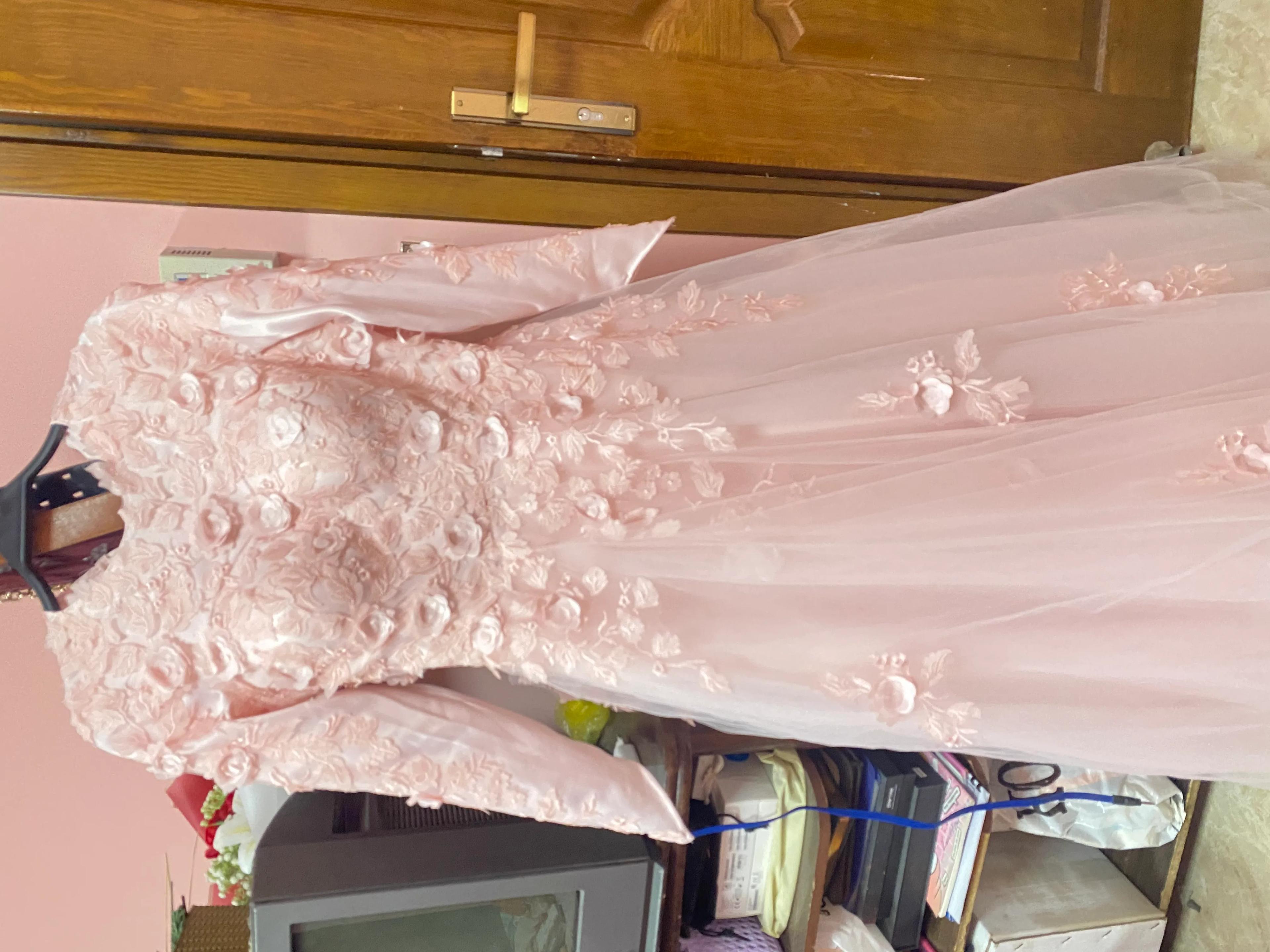 فستان فصلته لمناسبة ولم تتم هذه المناسبة لم يتم استعماله ولا مرة ليه رباط من ورا بيتظبط على حسب المقاس