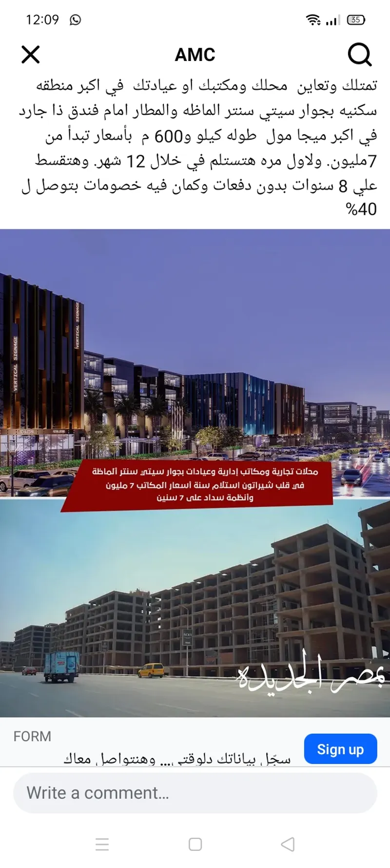 الفرصه الاقوي في أهم شارع حيوي في مصر الجديده هتقدر تمتلك وتعاين محلك ومكتبك أو عيادتك في اكبر منطقه سكنيه بجوار سيتي سنتر الماظه والمطار امام فندق ذا جارد في اكبر ميجا مول طوله كيلو و600 م بأسعار تبدأ من 7مليون. ولاول مره هتستلم في خلال 12 شهر. وهتقسط علي 8 سنوات بدون دفعات وكمان فيه خصومات بتوصل ل 40%