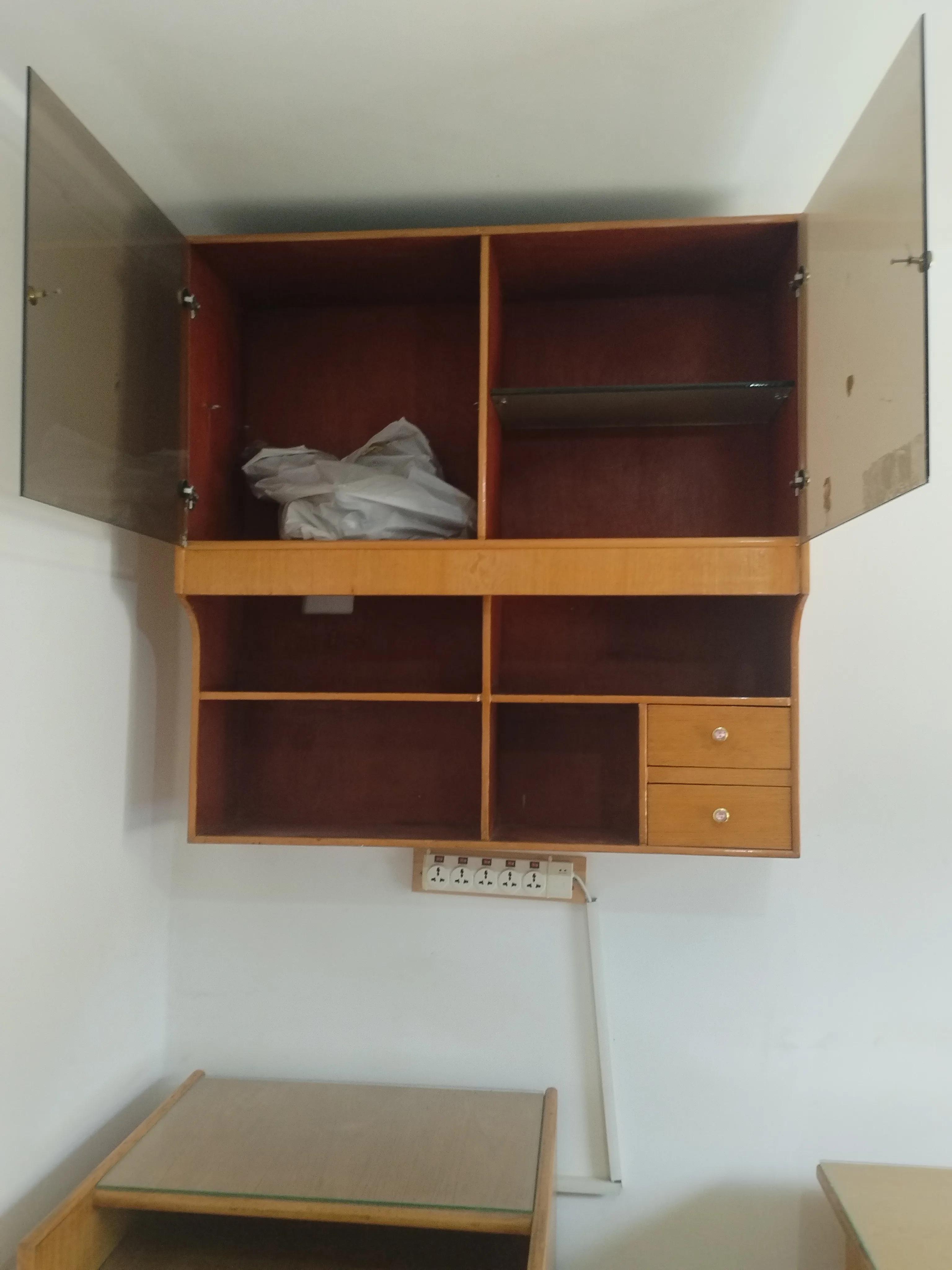 3- مكتبة خشب طبيعى بها رفين فى الأسفل ودرجين لزوم المستلزمات المكتبية.