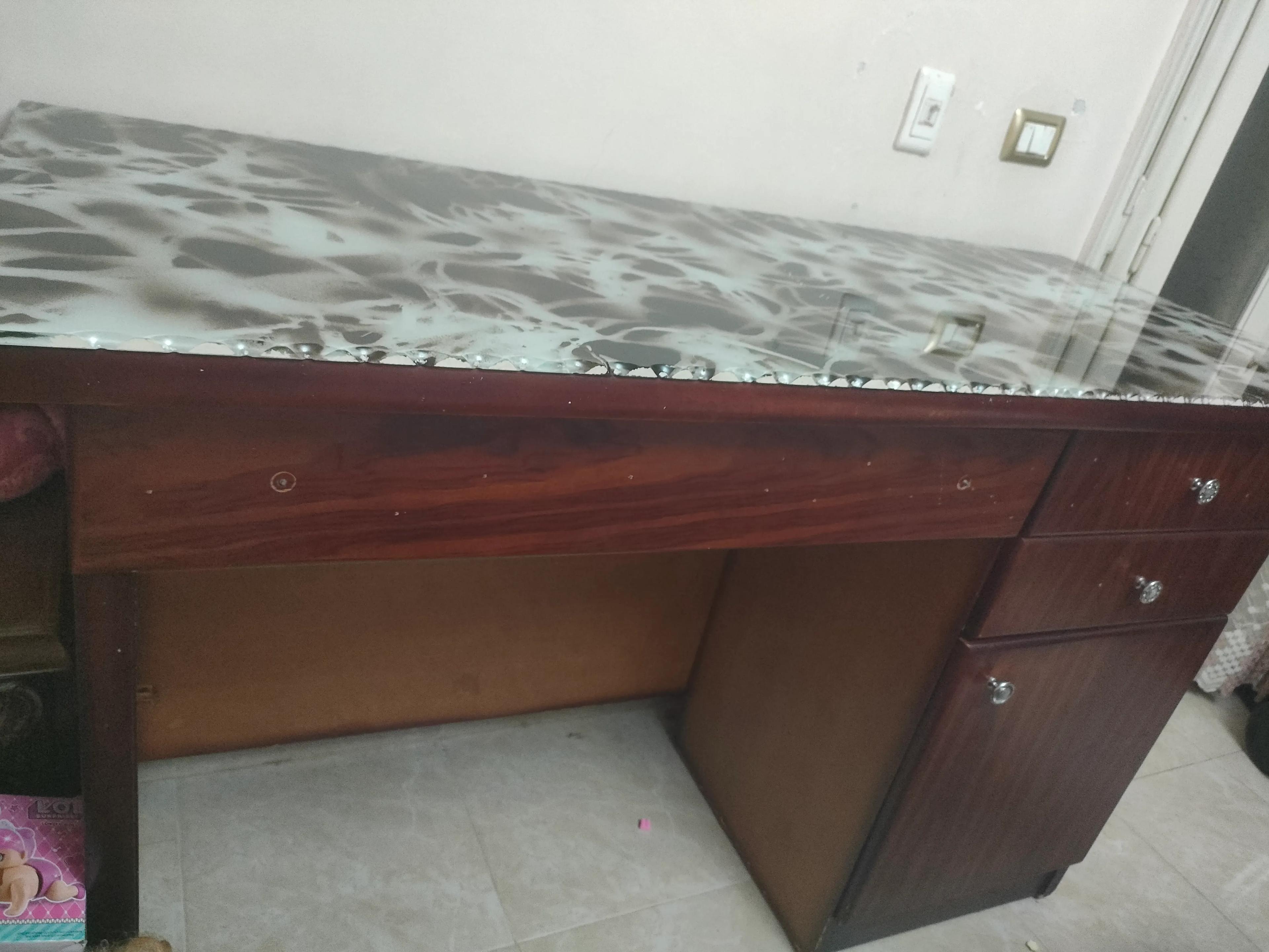 مكتب مديرين خشب اجود انواع الخشب بة وحدة ادراج وارفف يمين ويسار