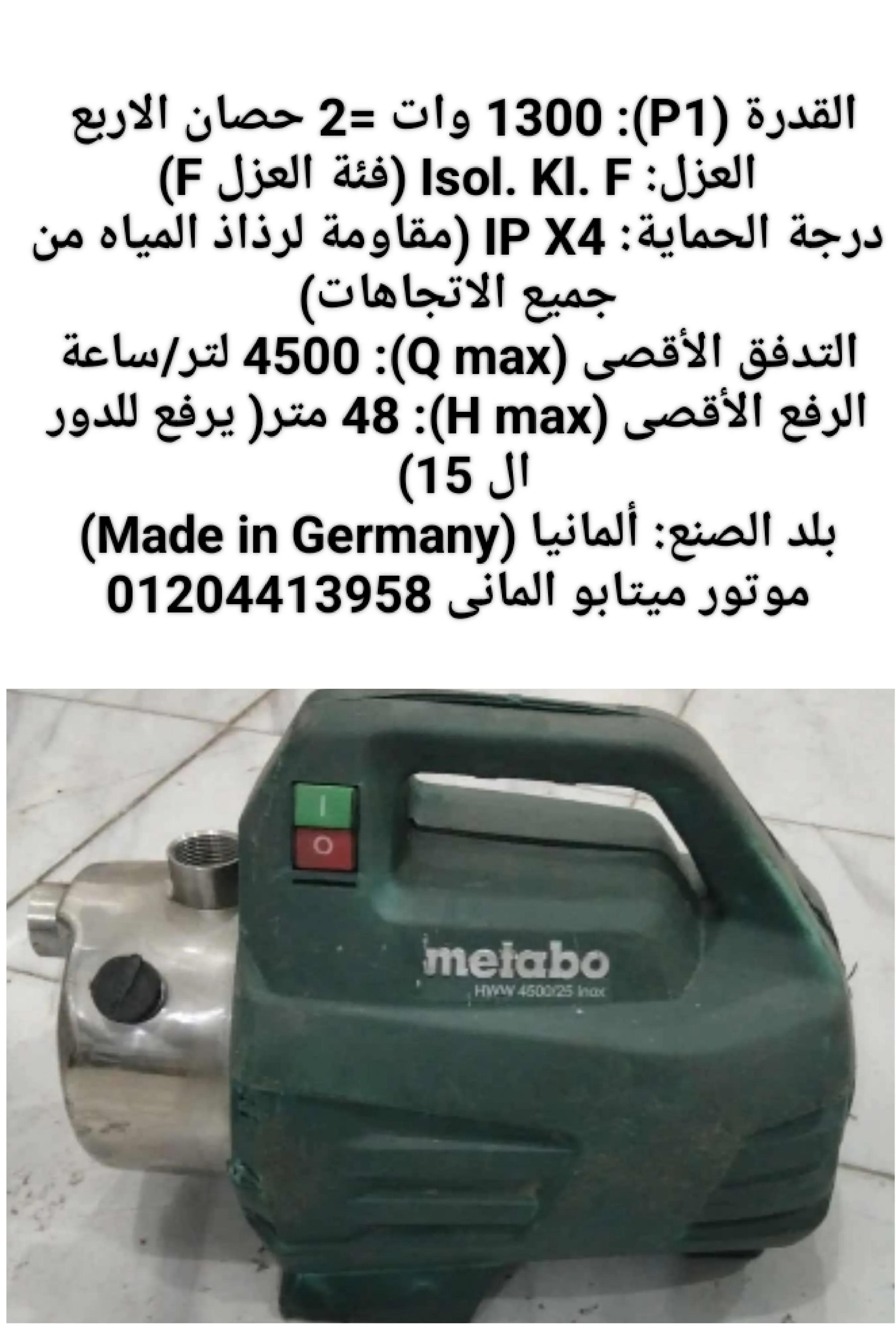 موتور ميتابو طلمبة استالس المانى اكس استالس يطلع الى الدور ال15 صوت منخفض خدمة شاقة بحالة بلادة ملفات نحاس حاجة محترمة