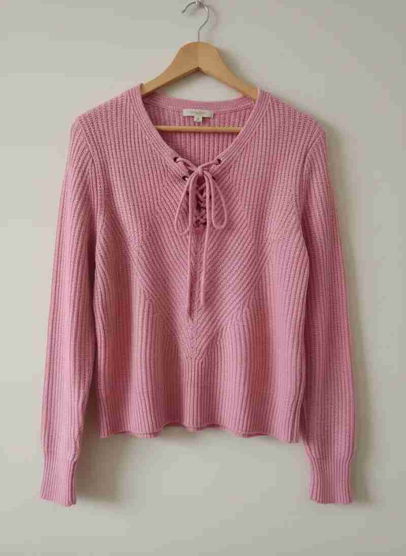 بلوزة صوف وردي أنيقة بتصميم رباط عصري – ناعمة ومريحة