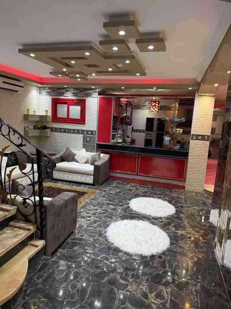 مواصفات التشطيب ( الدوبلكس بالكامل بورسلين أسبانى درجة أولى كل الحوائط والارضيات ، سلالم رخام ، حوائط الرسيبشن وأعمدة الدور الارضى والعلوى بورسلين درجة أولى ، جيبسون بورد بالكامل للأسقف + ديكور مكاتب التليفزيونات بكلا الدورين ومظلات للاسرة ، الغرف كلها جيبسون بورد ، دريسينج جيبسون بورد مزودة بتوزيع إضاءة كامل وسبوتات للدورين و led ،، المطبخ بالكامل حرف u مسطح برخام جلاكسى