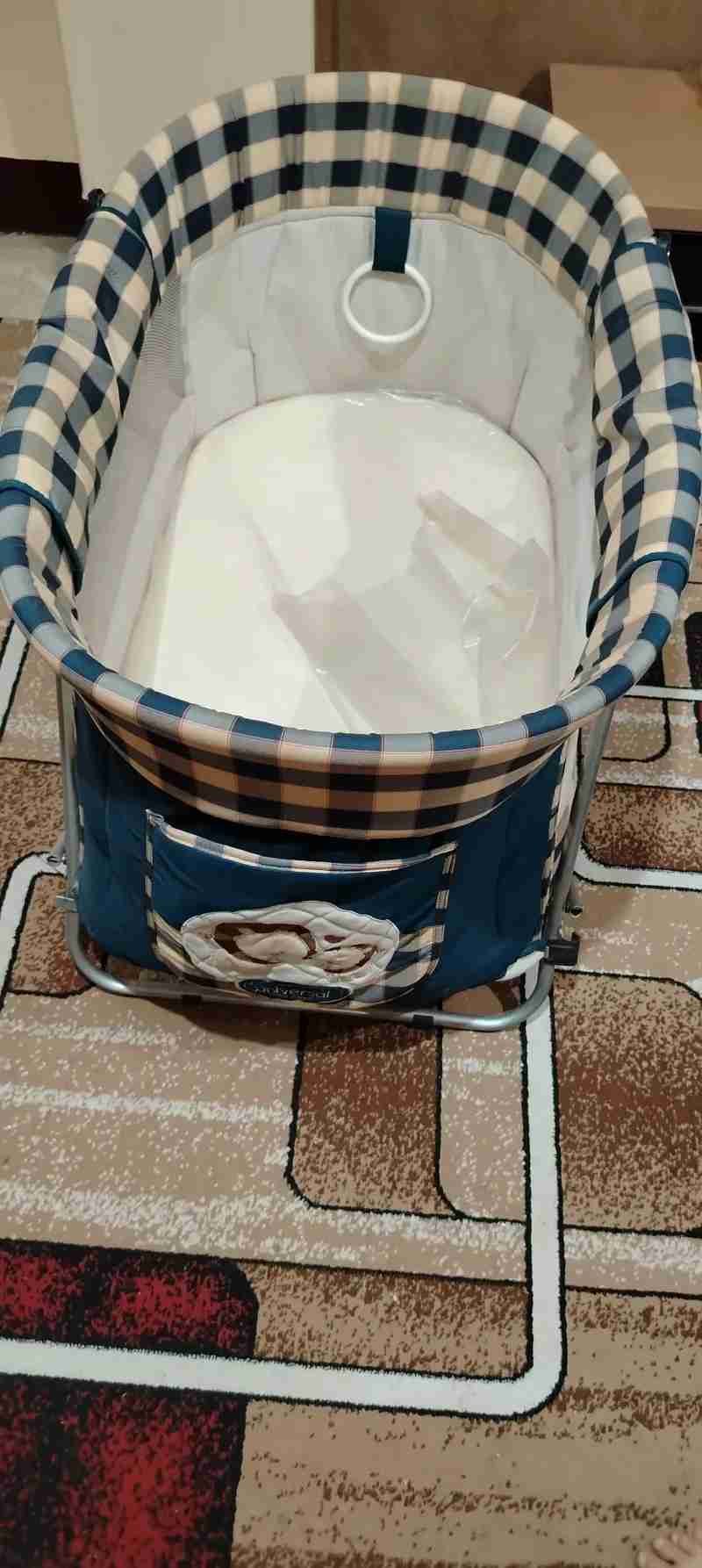 سرير بيبي حديد هزاز وثابت وفيه عجل عشان سهولة الحركة وبمستويين ومعاه مرتبه وناموسيه