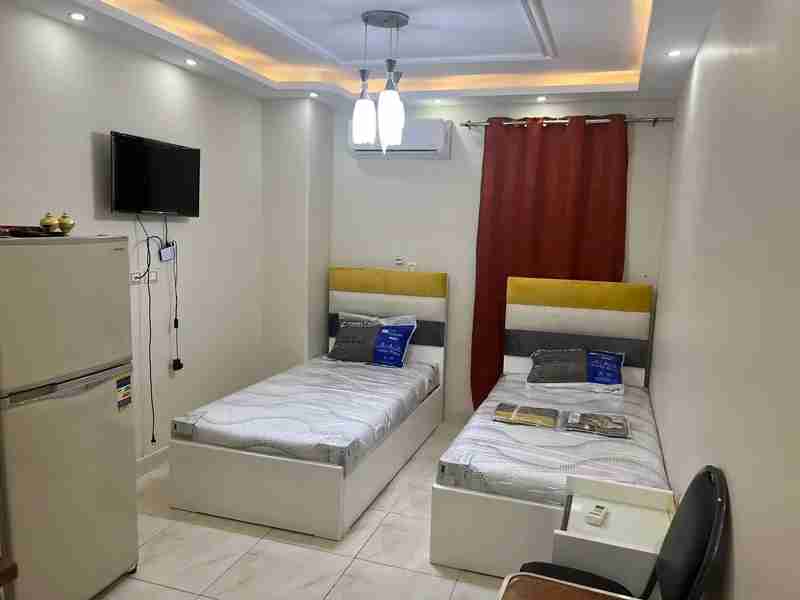 شقة مكونه من اربع استديوهات للبيع حي اولى تاني بلكونه تشطيب وفرش فندقي الاستديوهات عباره عن دبل و سنجل