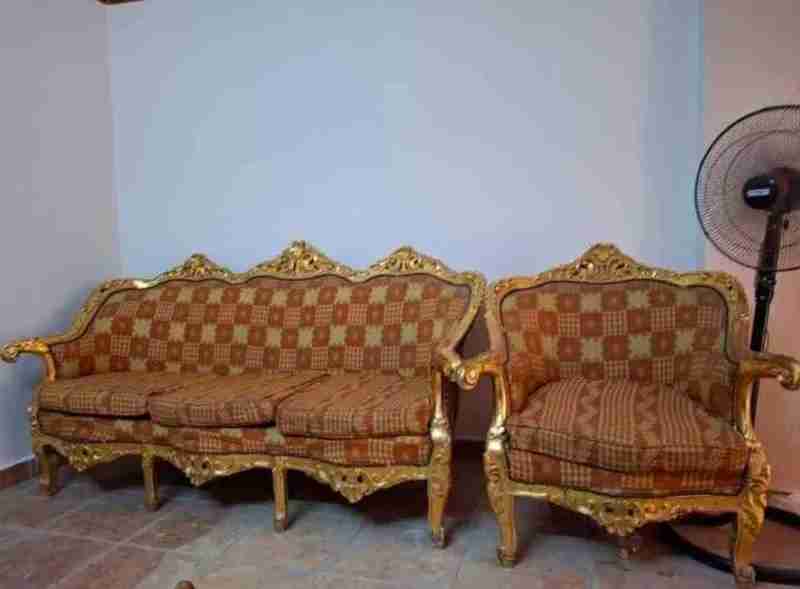 صالون جمهورية مذهب اصلي ذهب فرنساوي حالة جيدة كنبة واربع كراسى وترابيزة