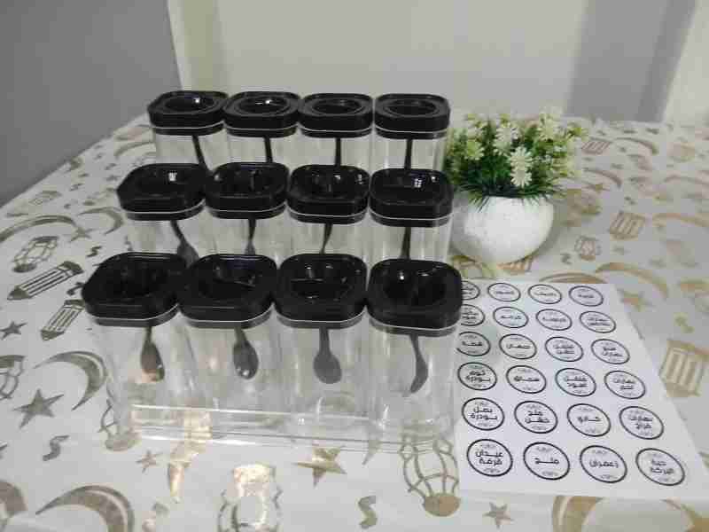 طقم توابل اكليريك ١٢ قطعه + ١٢ معلقه+ سلم اكليريك + استيكر توابل