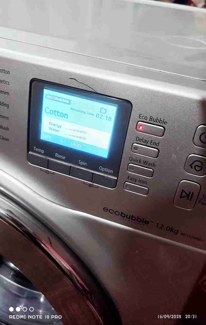 غساله سامسونج 12كيلو eco bubble صناعه كوري تعمل بشكل جيد جداً موتور انفرتر تشيل بطانيه بدون صوت تحكم كامل في البرامج تنفع عروسه ت***5