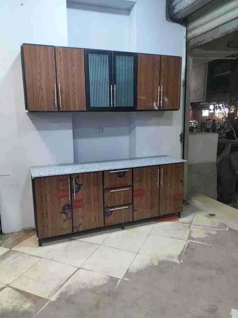 مطبخ الومنتال مقاس 2متر فوق وتحت مع رخامه هديه ضلف يوڤي مقاوم للكسر دواخل فيبر جلاس بلكامل عمق العلوي 38سنتي عمق السفلي 50سنتي مع درجين وضلفه لزيت