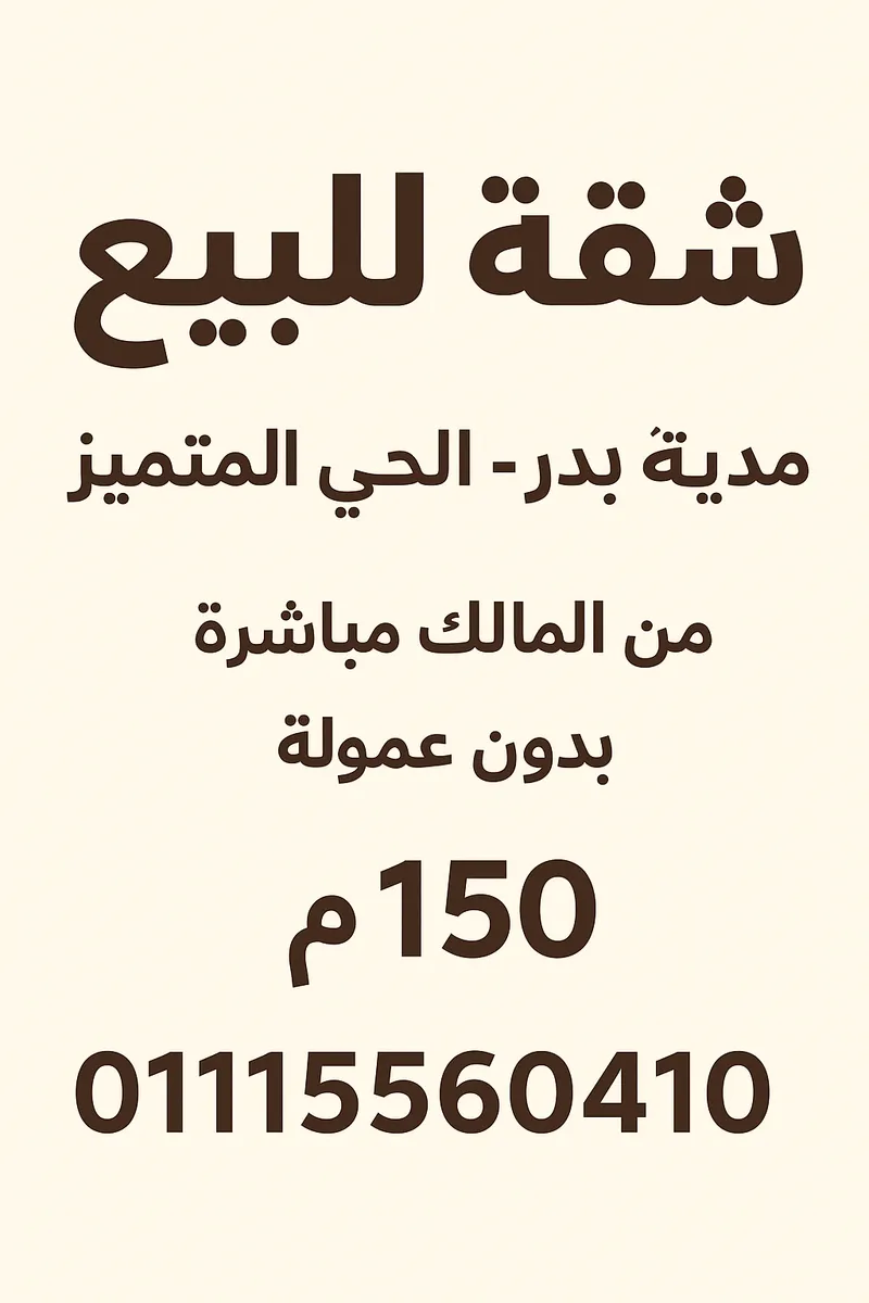 🏡 شقة للبيع في مدينة بدر – الحي المتميز (منطقة رابعة) – 150م