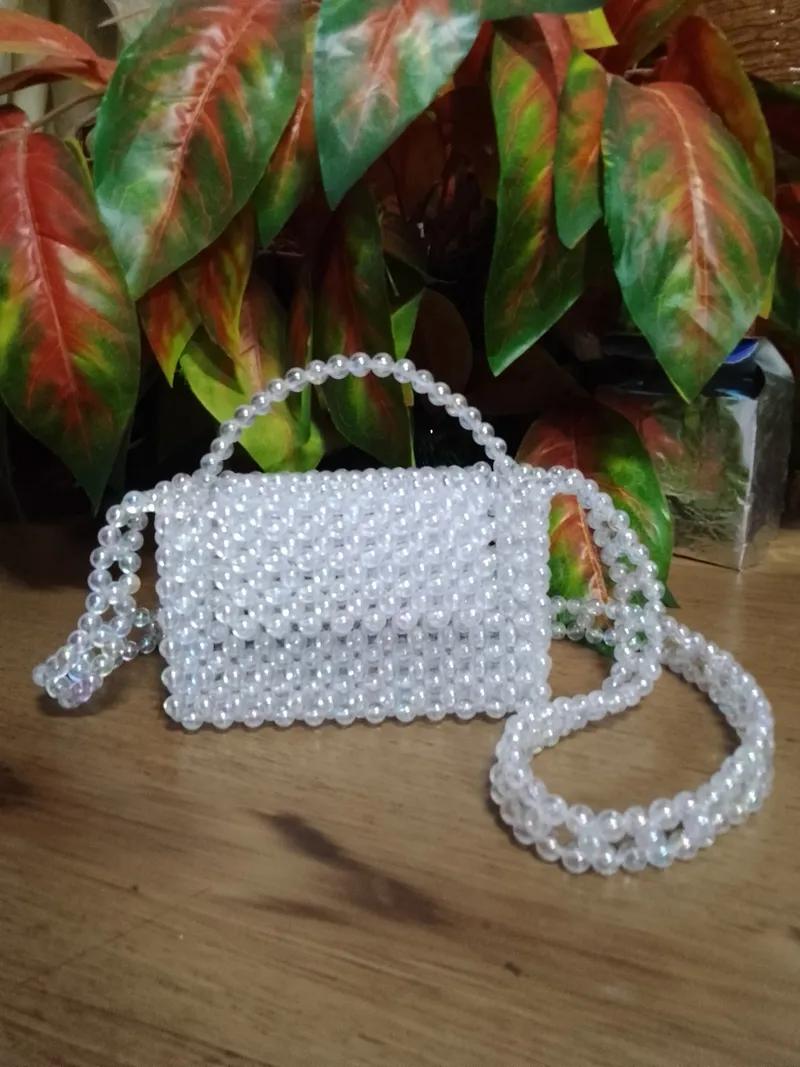 شنطه بالخرز شغل يدوي مصنوعه من خرز شفاف يعطي الوان طيف شكله مميز