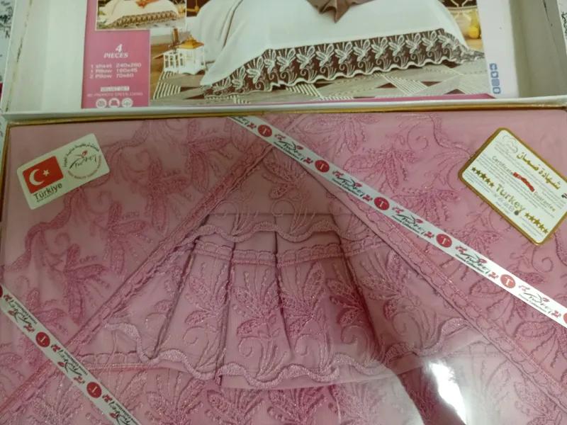 مفرش سرير ستان تركي ٤قطع شيك وجديد متفتحش وفي ضمان ينفع عروسة